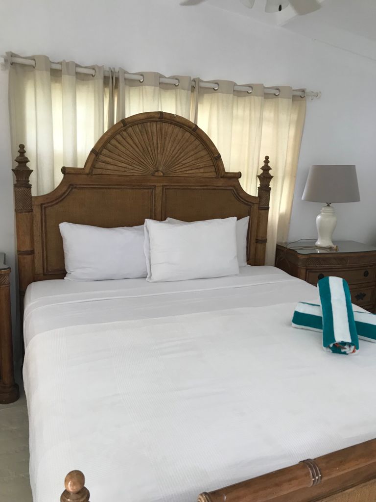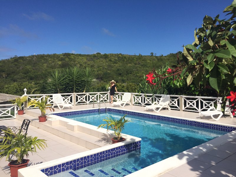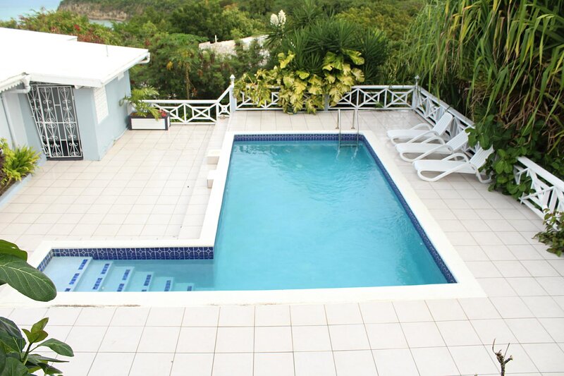 View 62 has a full kitchen stocked with all the cutlery, cooking utensils, and dishes you may need. View 62 also has an outdoor dining area, a private swimming pool, cable /Internet television, and a washing machine. View 62 has two large ensuite bedrooms; one bedroom is in a separate wing making it ideal for 2 couples. Both bedrooms have a king-sized bed. The bedrooms are fully air-conditioned and are also equipped with ceiling fans.